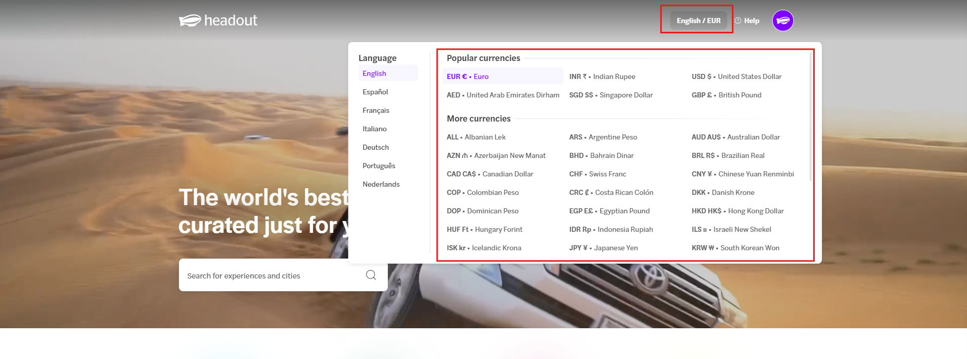A quick heads-up: All transactions are processed in the local currency of your chosen experience. Say you’re in New York, booking an experience in London—your card will be charged in British Pounds (GBP), even if you view the price in US Dollars (USD). No surprises, though! The final amount is shown in both your selected currency and the local one at checkout.