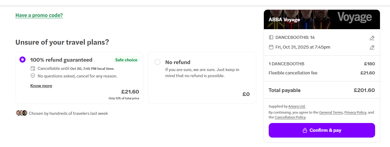 - On eligible experience pages, look for “Unsure of your travel plans?” during checkout.